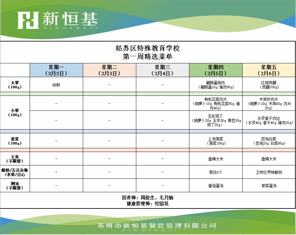 2025-2026学年第二学期第1周菜谱