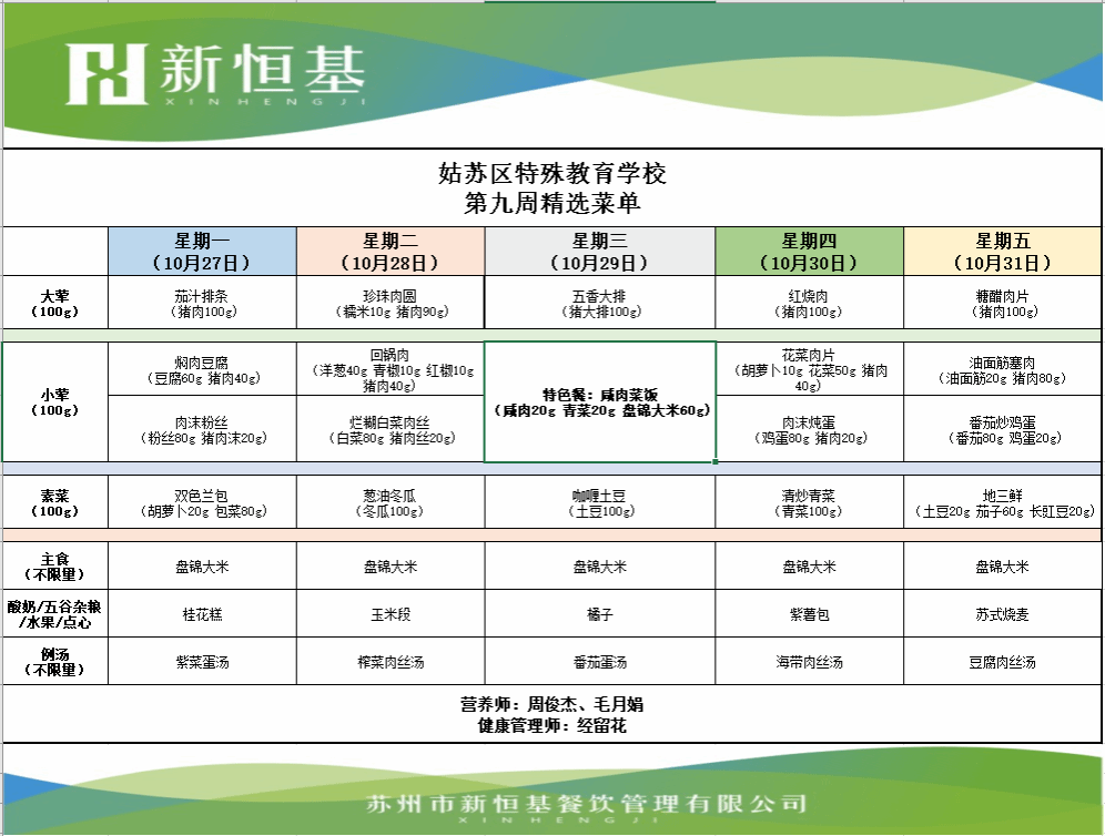 2025-2026学年第一学期第9周菜谱