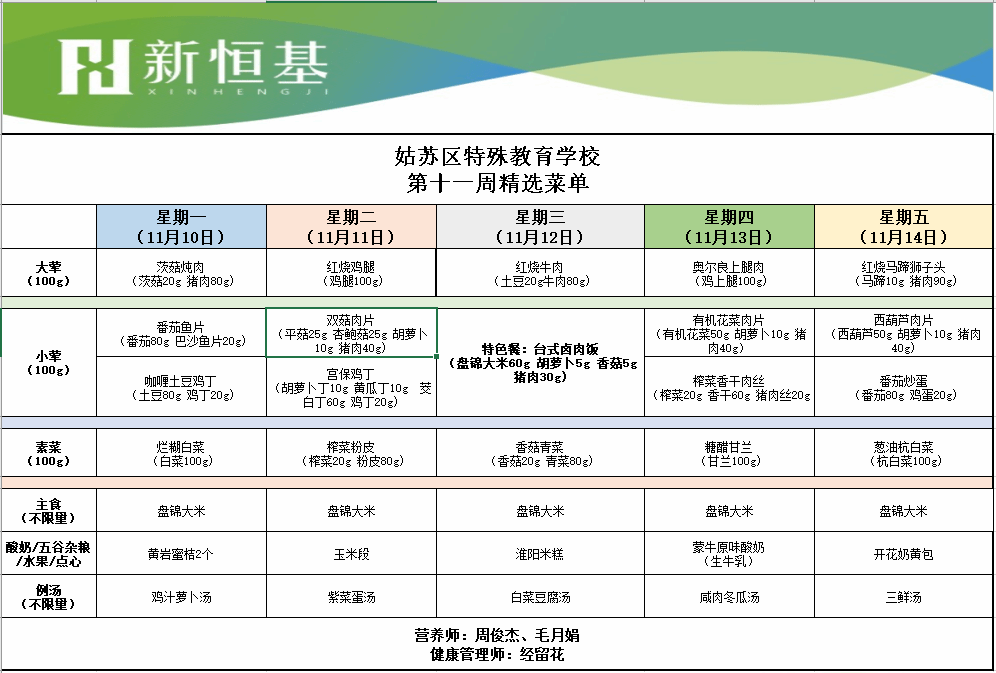 2025-2026学年第一学期第11周菜谱
