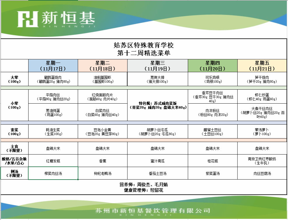 2025-2026学年第一学期第12周菜谱